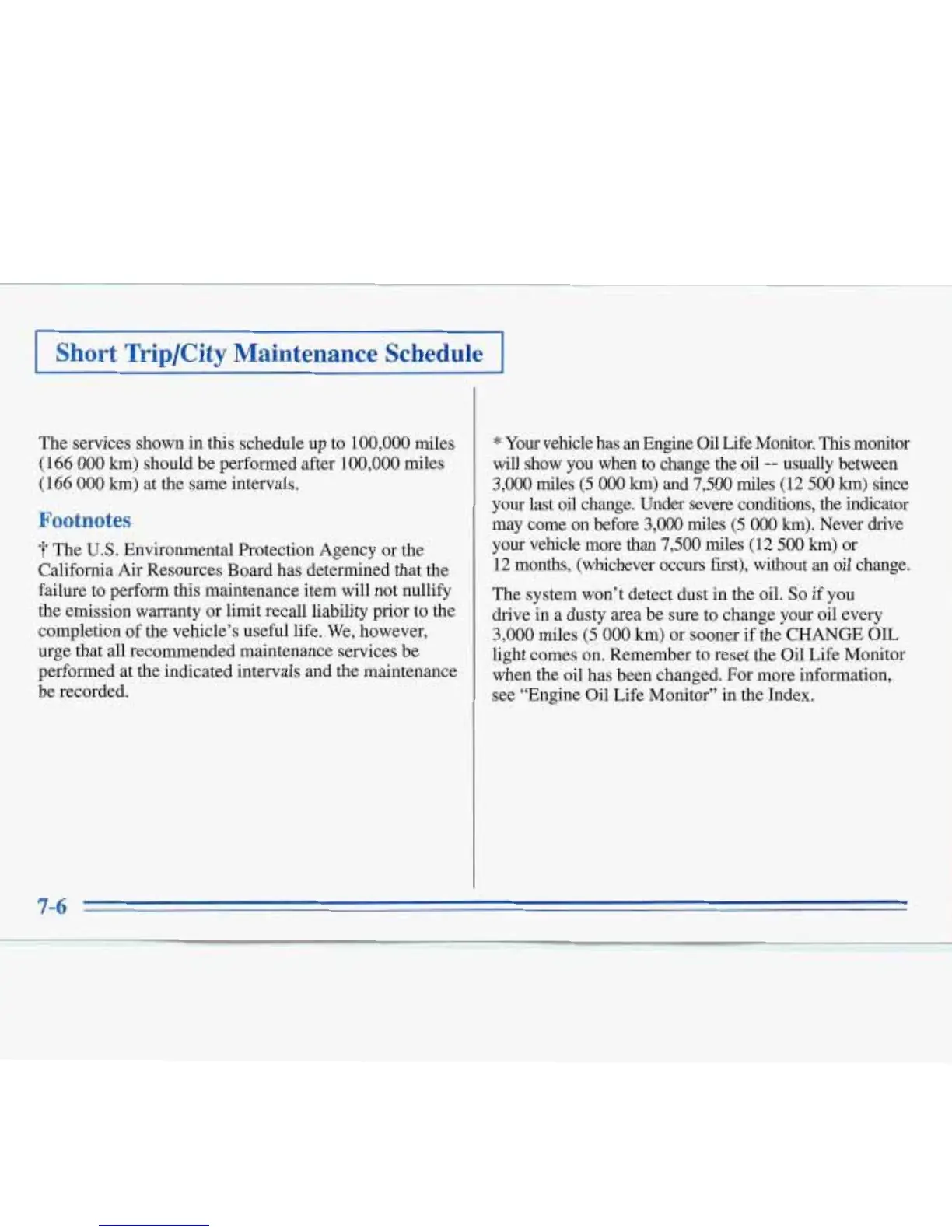Short Trip/City Maintenance Schedule