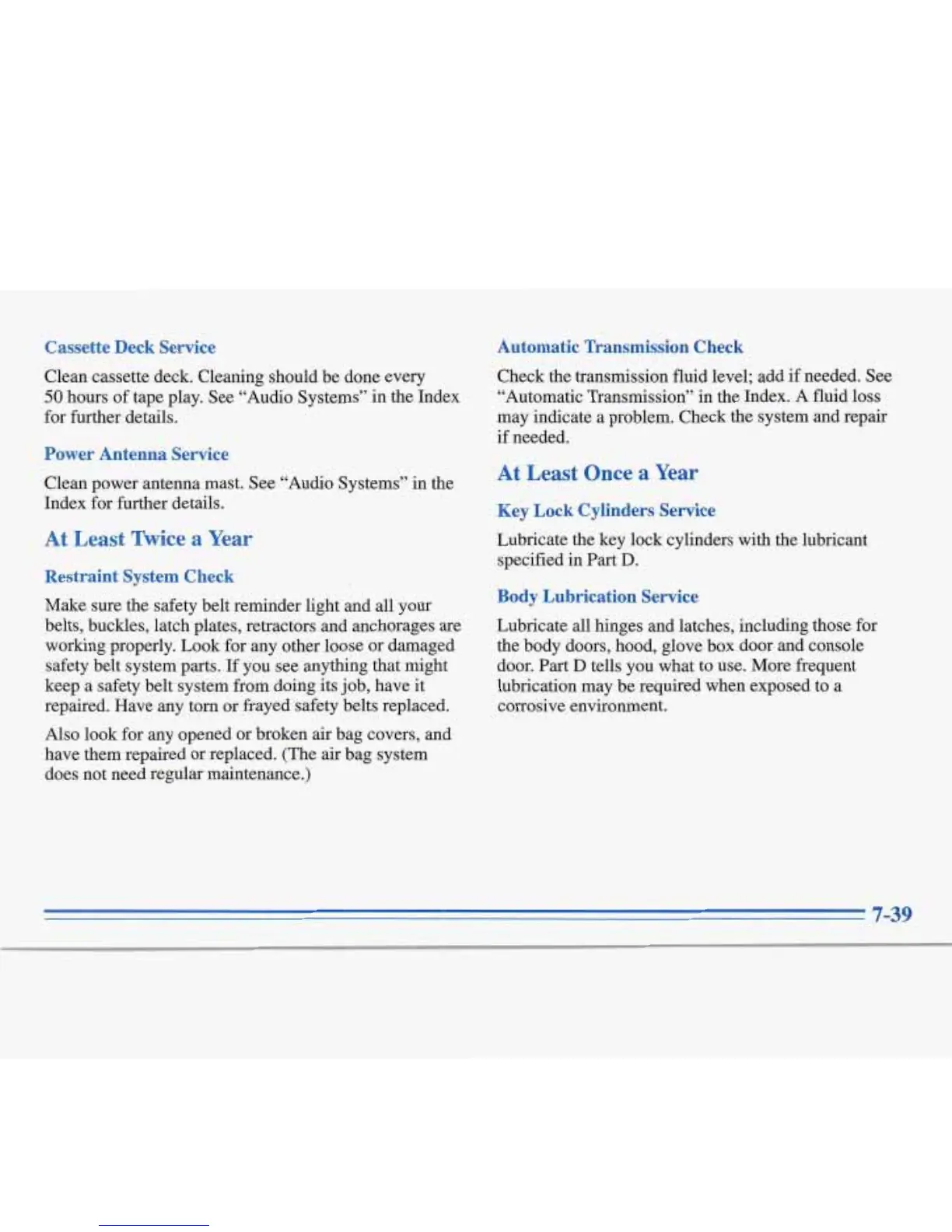 tape play. See “Audio Systems” in the Index