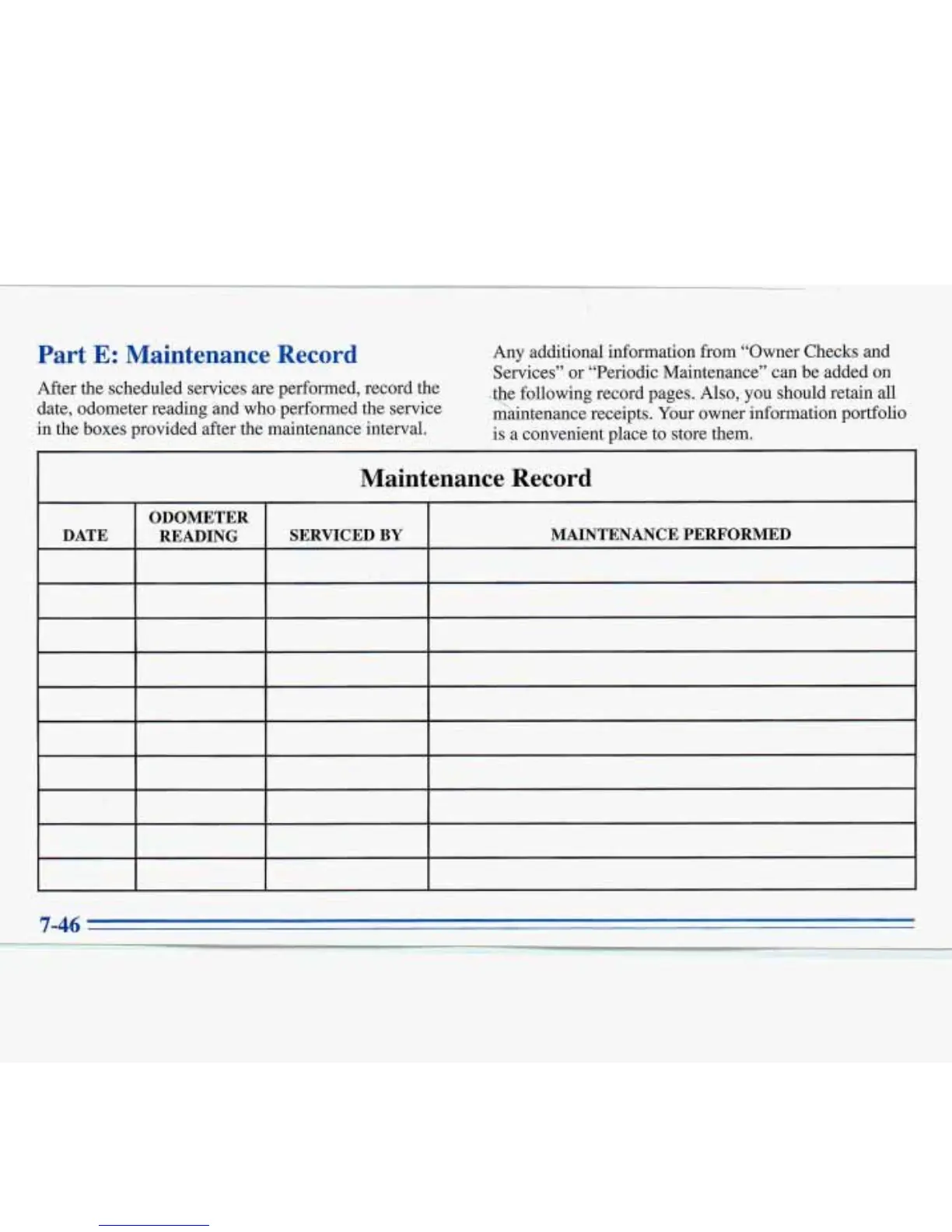 in the boxes provided after the maintenance interval.
