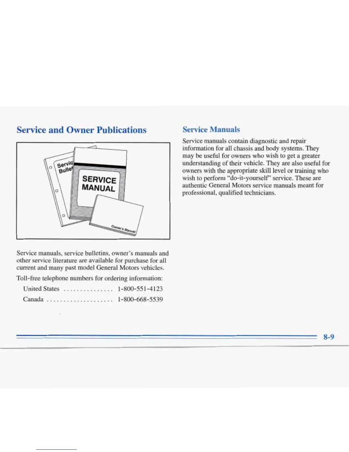 Service manuals, service bulletins, owner’s manuals and