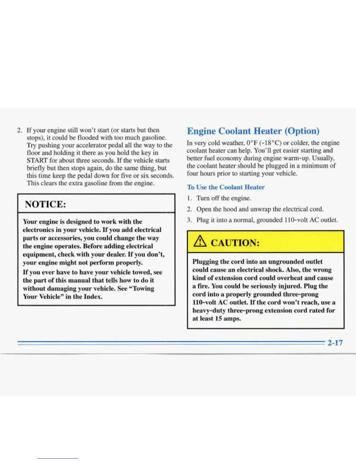 or colder, the engine