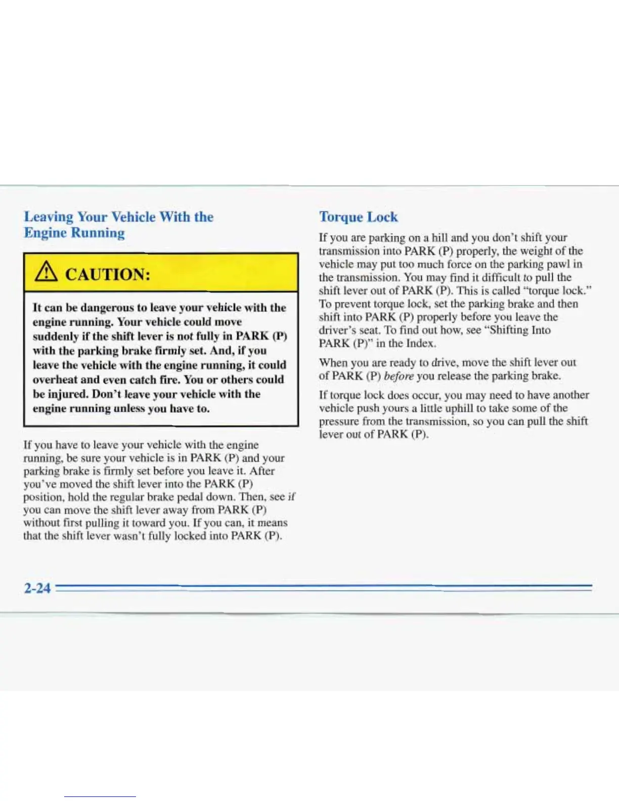 shift lever out of PARK (P). This is called “torque lock.”