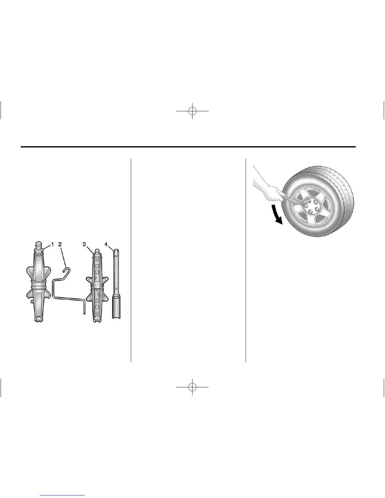jack (1) and two-piece wrench (4).