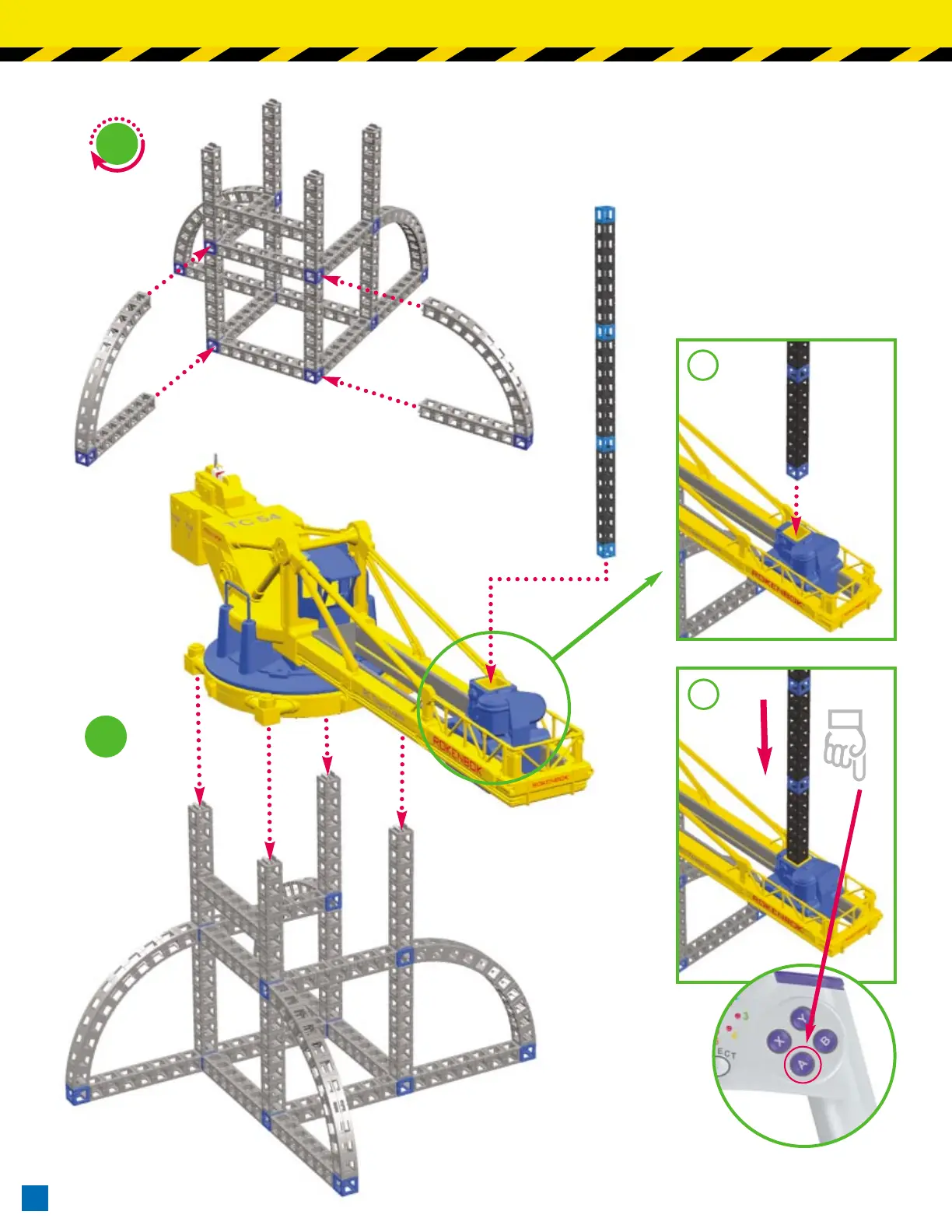 build 04709 - Assembly Step 3: Second Tower Section; Assembly Step 4: Main Arm Attachment