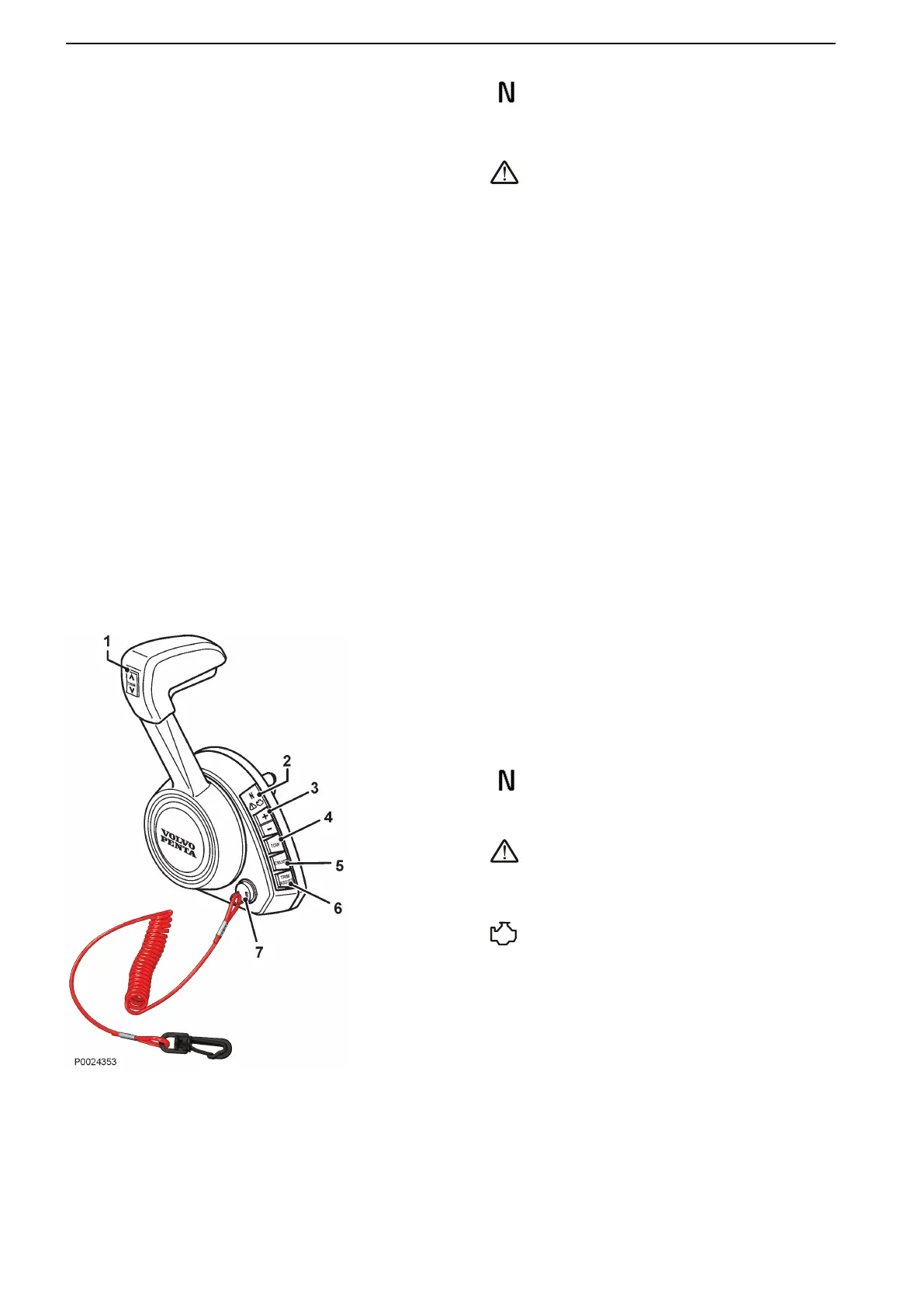 or reducing (-) engine rpm with button (3).