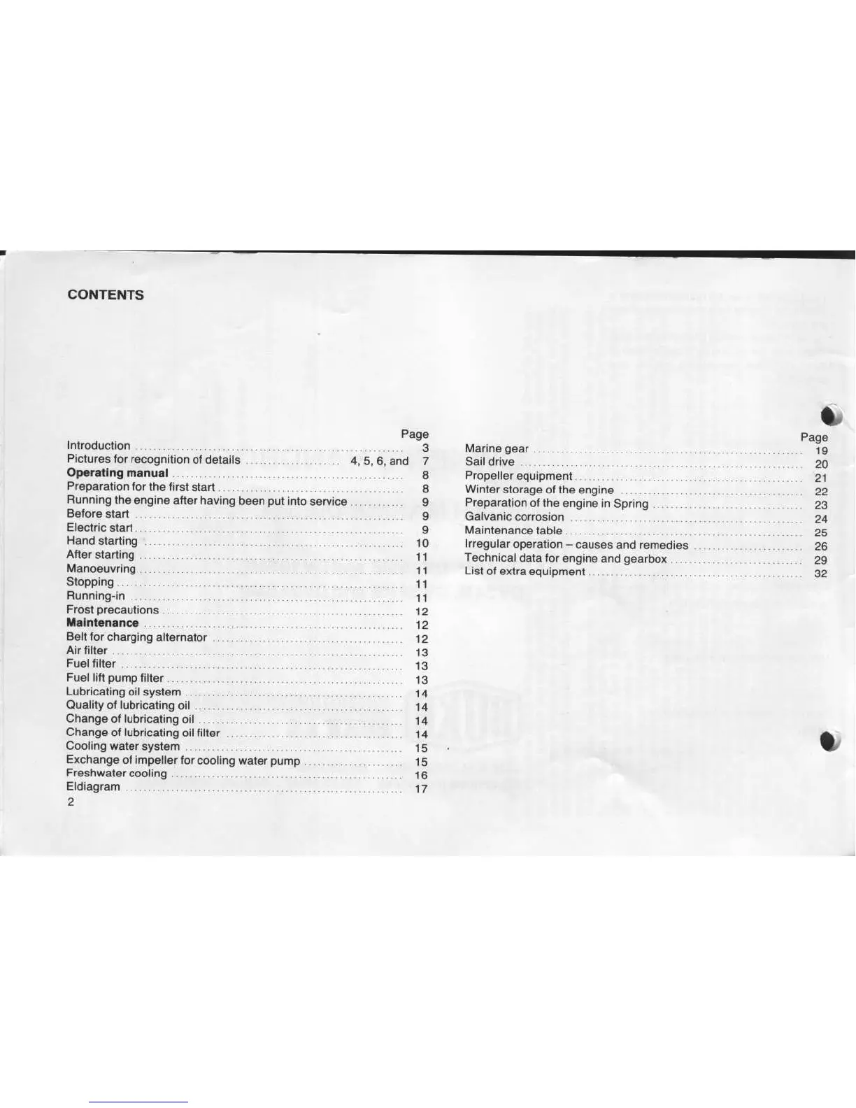 Bukh DV 10 M - Contents