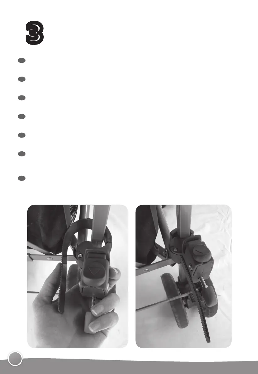 Pase estos anillos alrededor de los tubos del chasis de su carrito. El botón «Press» debe