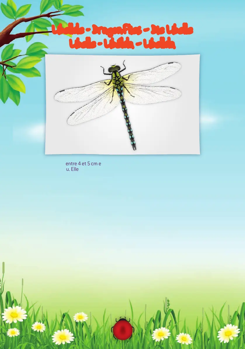 Dragonflies are 4 cm - 5 cm long and are usually blue, black or green. They live near lakes, ponds