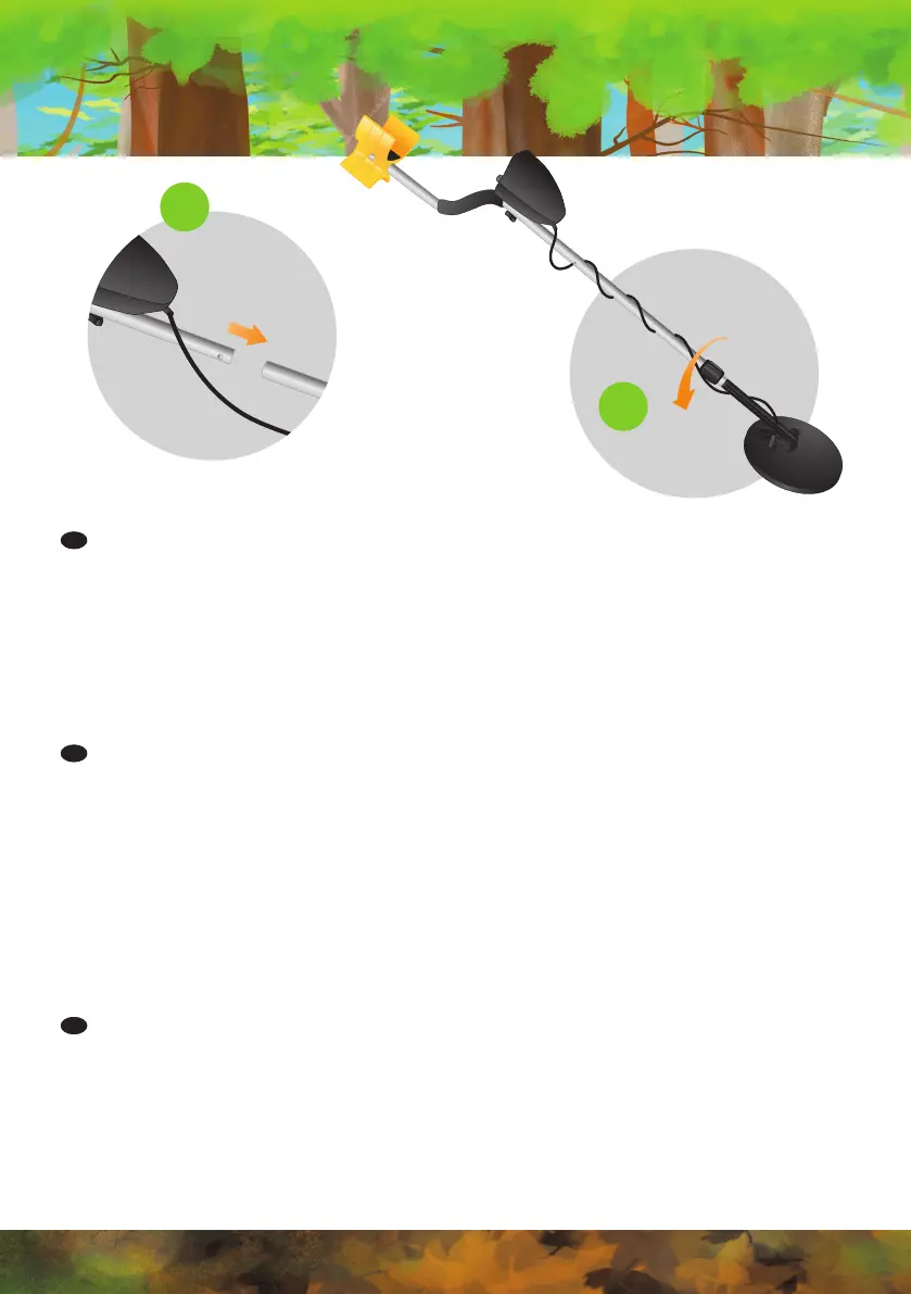 5. Para ajustar la distancia al suelo del detector, aoje el collarín central, exenda o retraiga el tubo