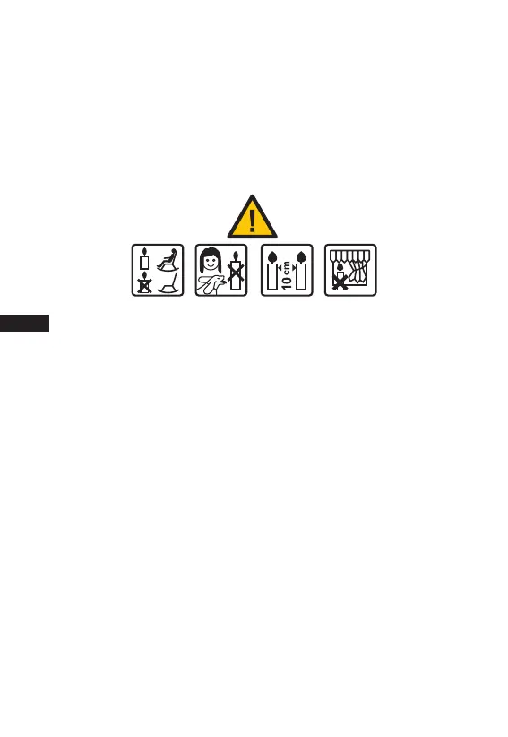 Kerzen nicht in Zuglu stellen. Kerzen senkrecht aufstellen.