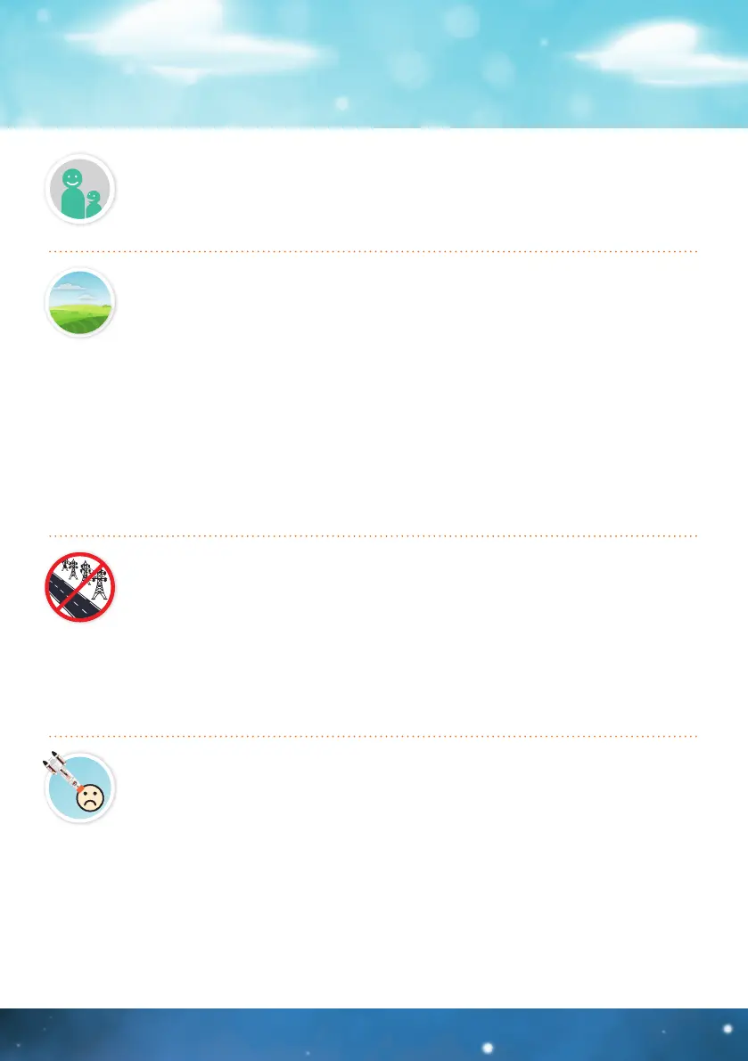 de 30 a 50 m. Es preferible un terreno con hierba o erra y evitar las supercies duras. Se