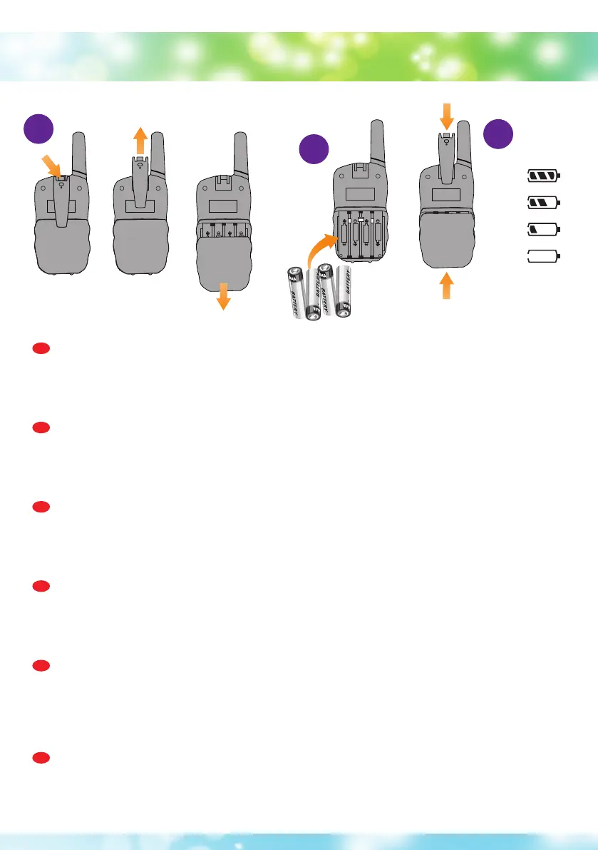 1. Detach the belt clip by pressing the tab and open the baery compartment