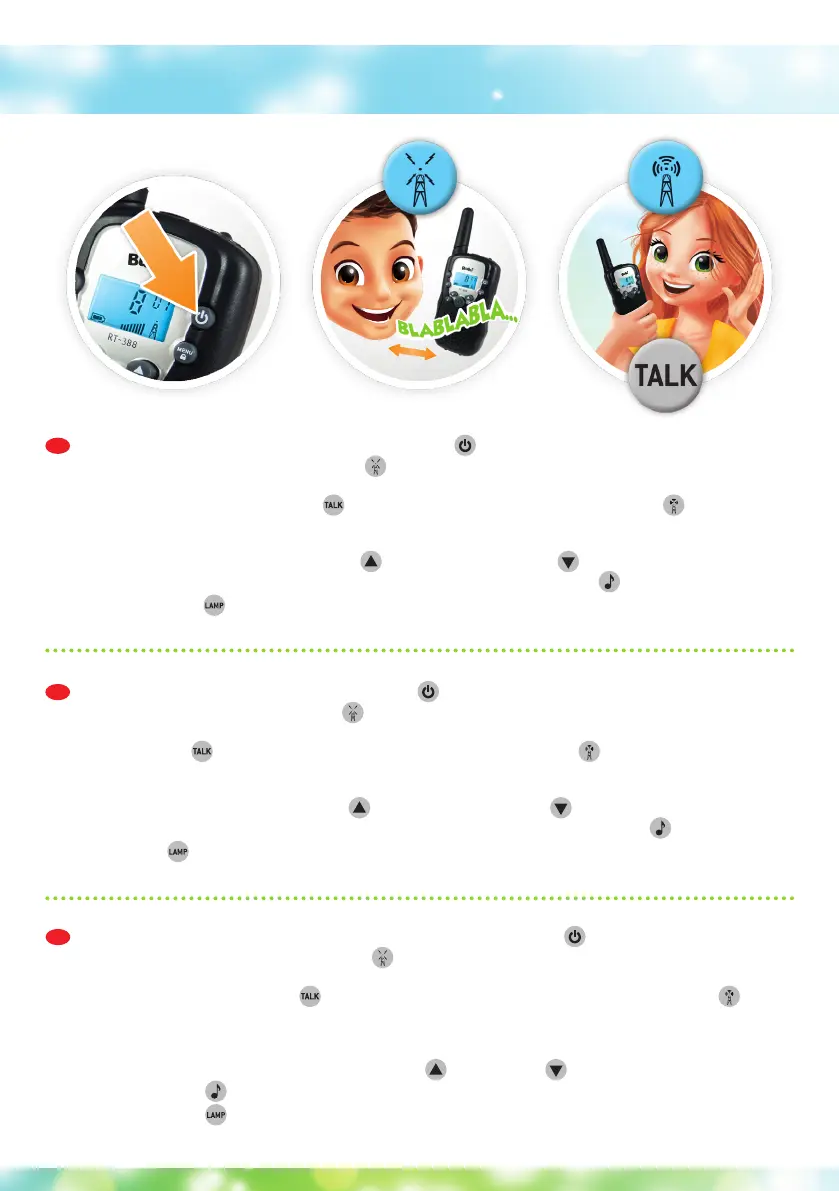 Press the buon to put the walkie-talkie in transmit mode . Keep the buon pressed