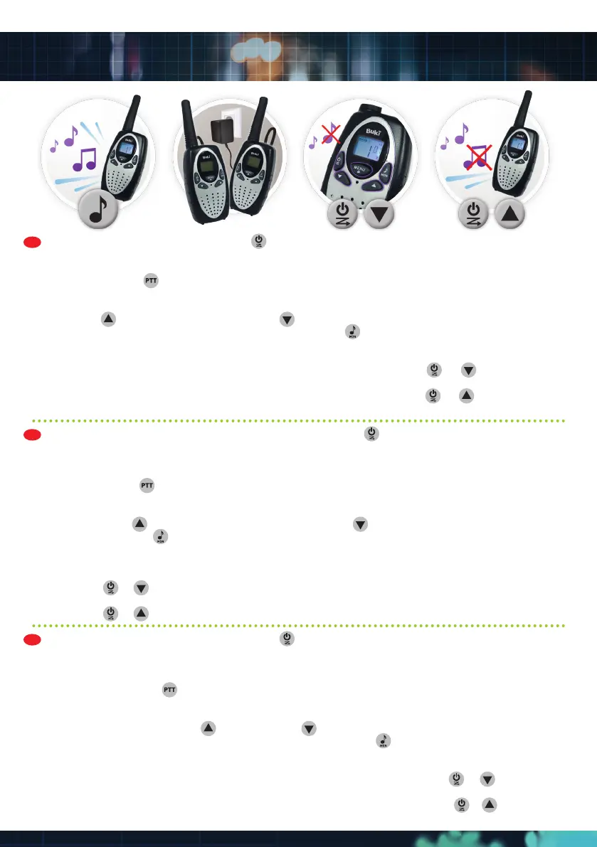 premuto il pulsante e poi rilascialo una volta terminato. Il walkie-talkie emeerà un bip di ne trasmissione e