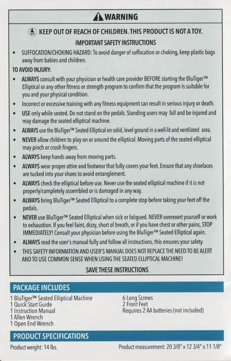 BulbHead BLU TIGER - Safety Precautions; Important Safety Warnings; Product Details; Package Contents and Specifications