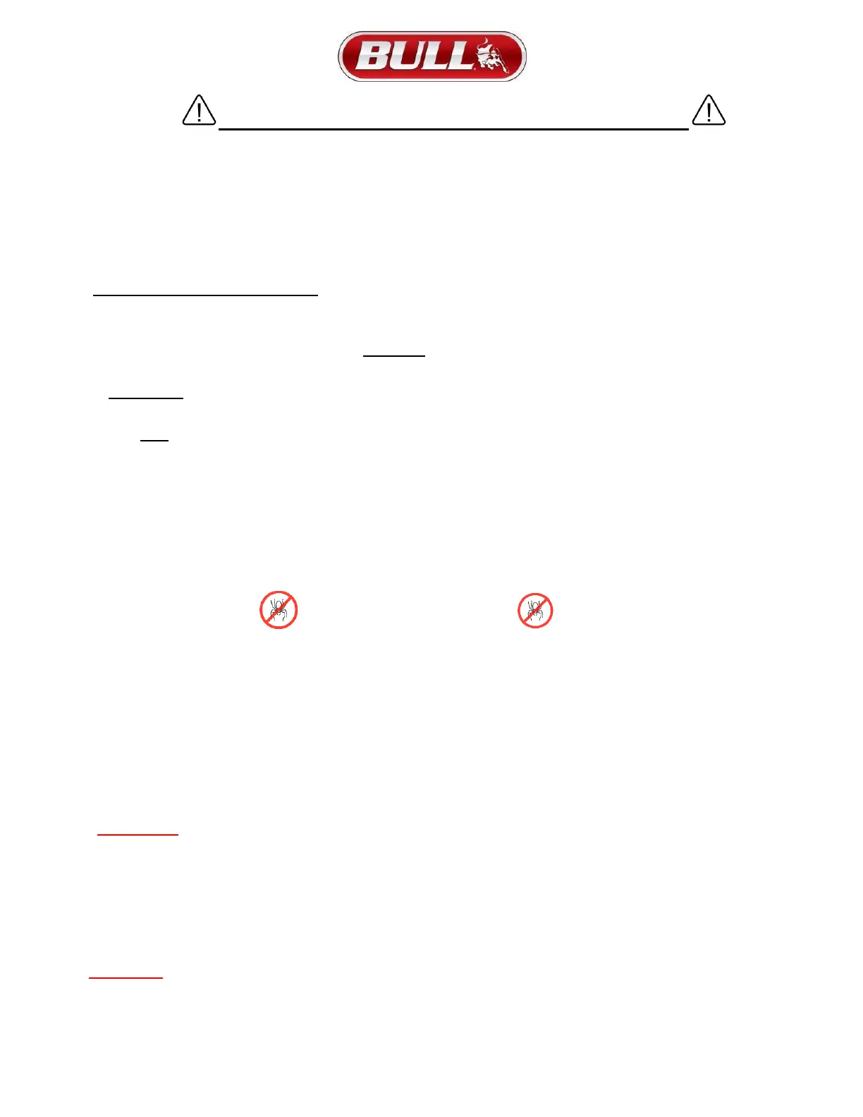 WARNING: Gas valves are pre-set at the Bull factory to operate on LP Gas or Natural Gas. If you