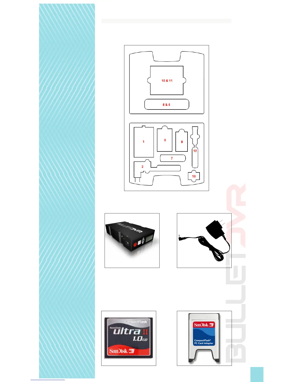 Make sure that you have the following items supplied with your Bullet DVR kit: