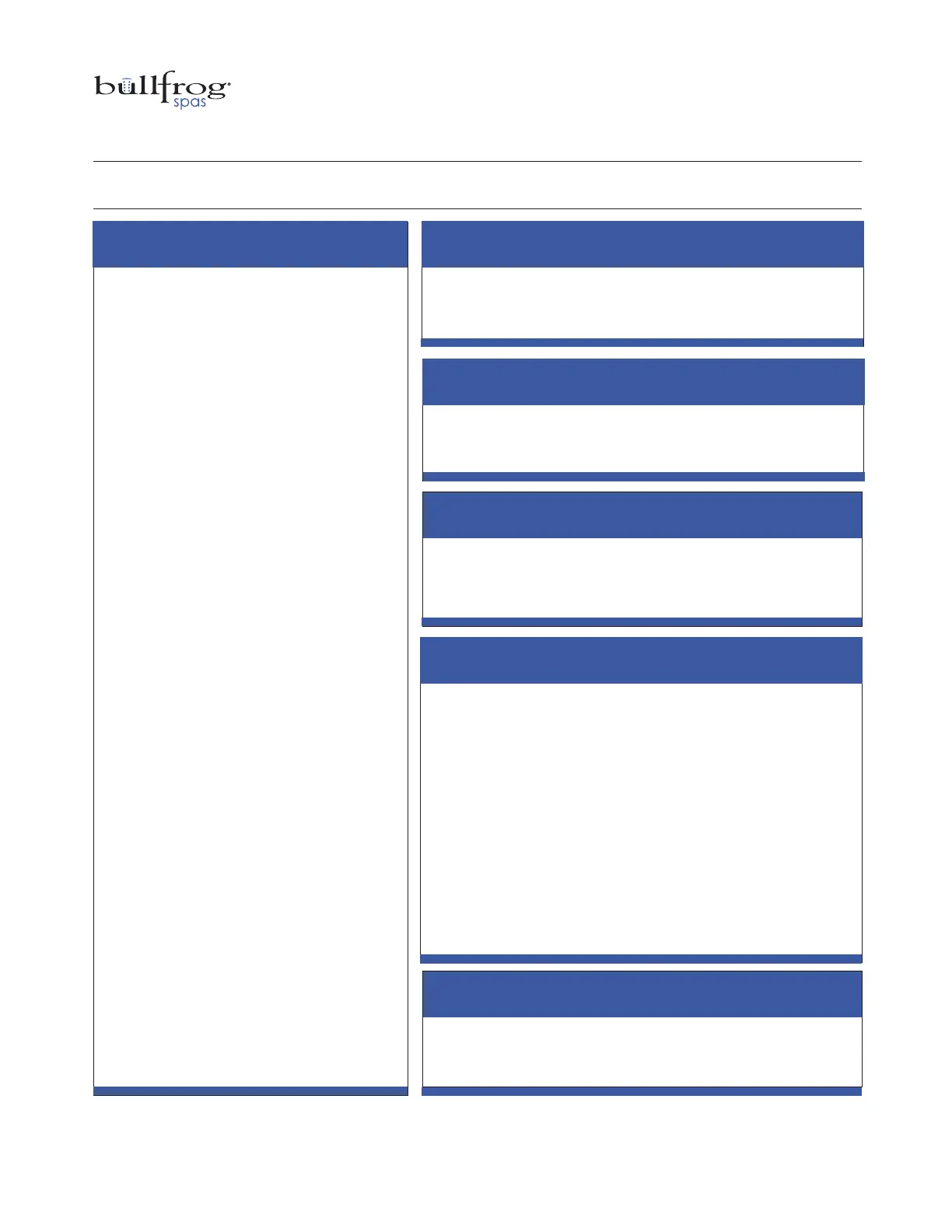 • Bullfrog warrants the Bullfrog Spa shell not to leak for seven years