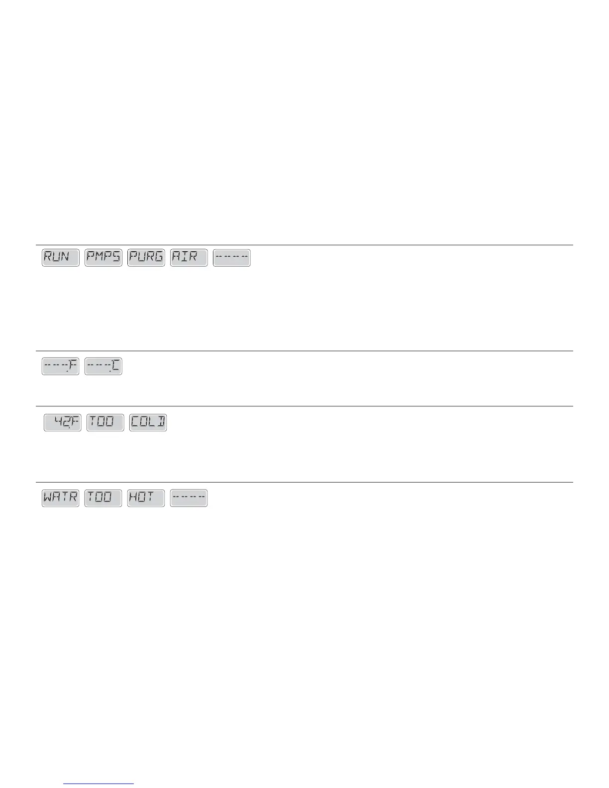 freeze condition has ended. In some cases, pumps may turn on and o and the heater may operate during Freeze Protection. is is an operational message,