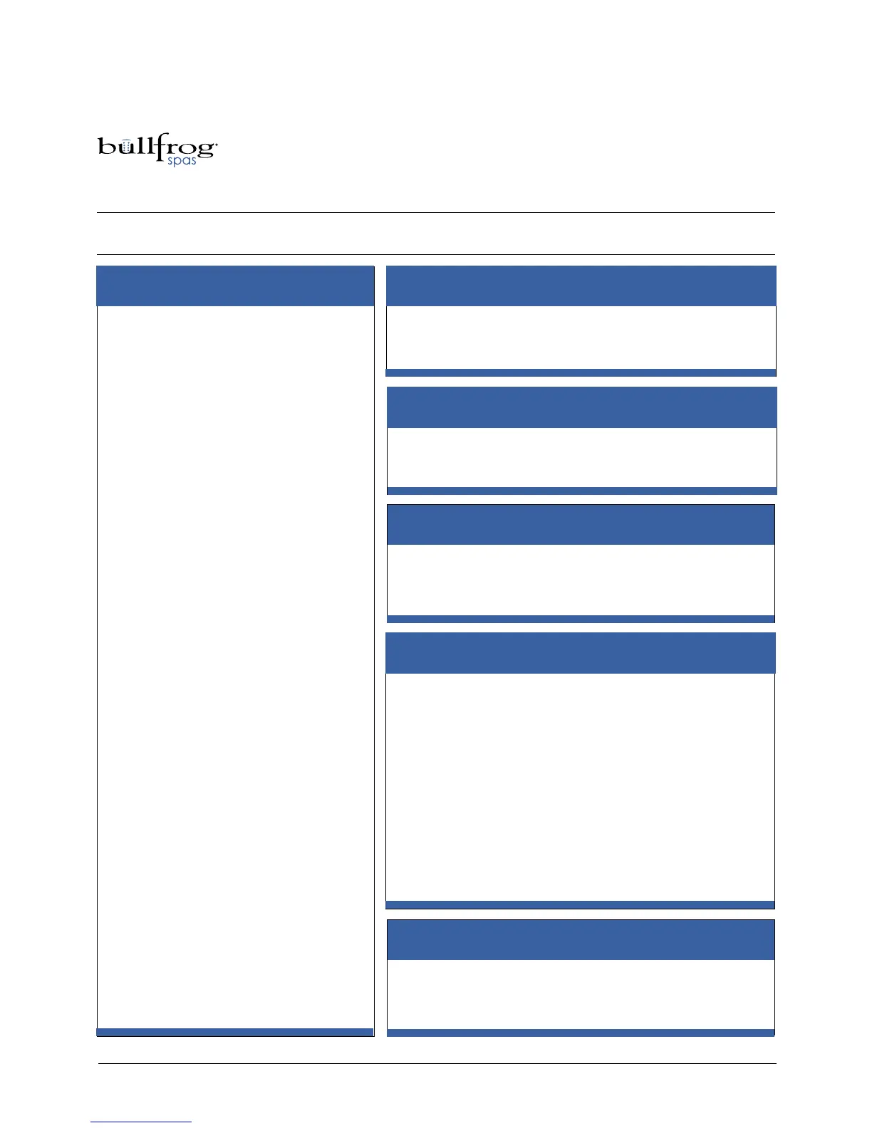 • Bullfrog warrants the Bullfrog Spa shell not to leak for seven years