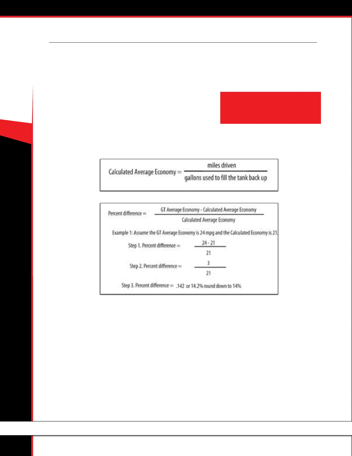 5. Calculate your vehicle’s average fuel economy by hand using the following equation: