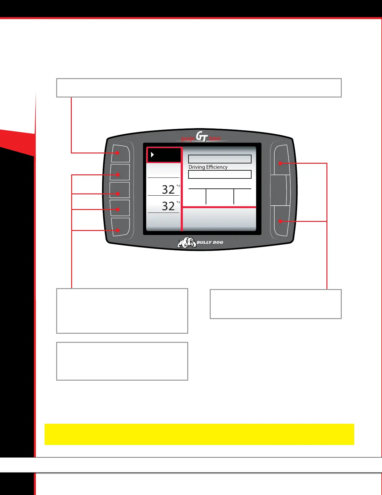 NOTE: The GT buttons are Capacitive Touch. This means that a light touch is all that is needed to choose different options.