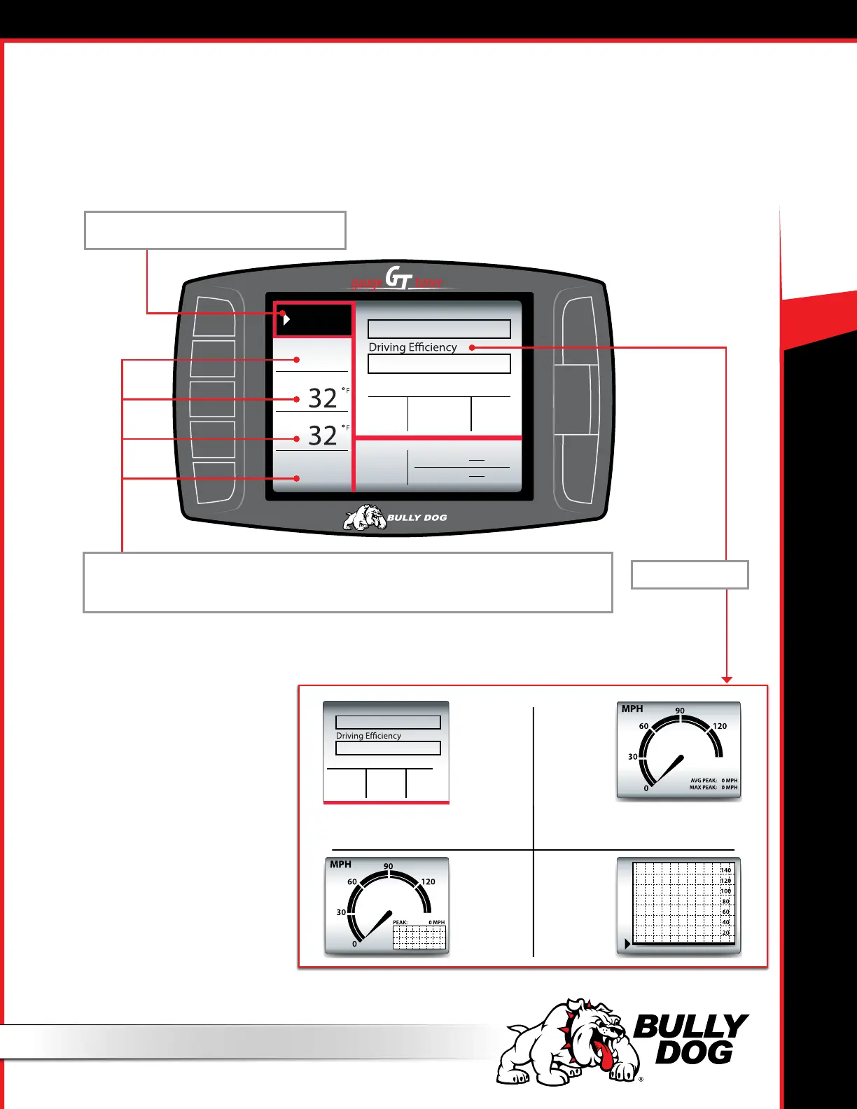 This picture of the GT Platinum main screen has the Driving Coach selected for the Large Gauge option. You can change which gauge