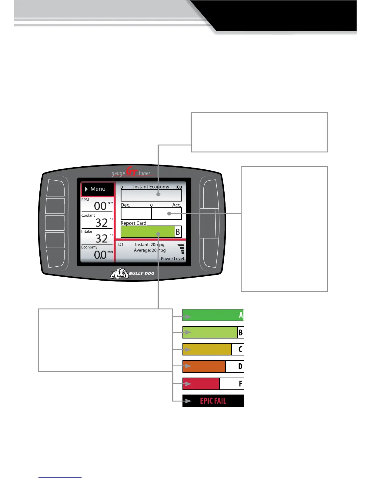 The large gauge area is where the Driving Coach information is displayed. The diagram below