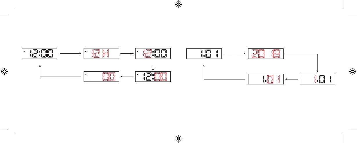 » 12 または 24 の表示が点滅中、B キーを押して 12 または 24 時間表示を選択