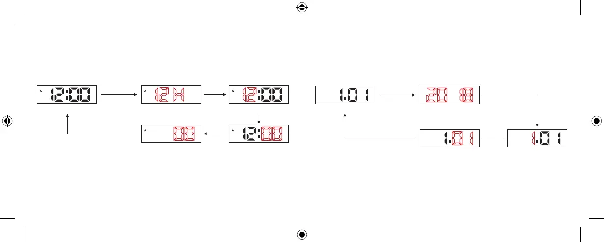 » 当12或24字样闪烁时,按B键可切换选择12或24小时显示格式。
