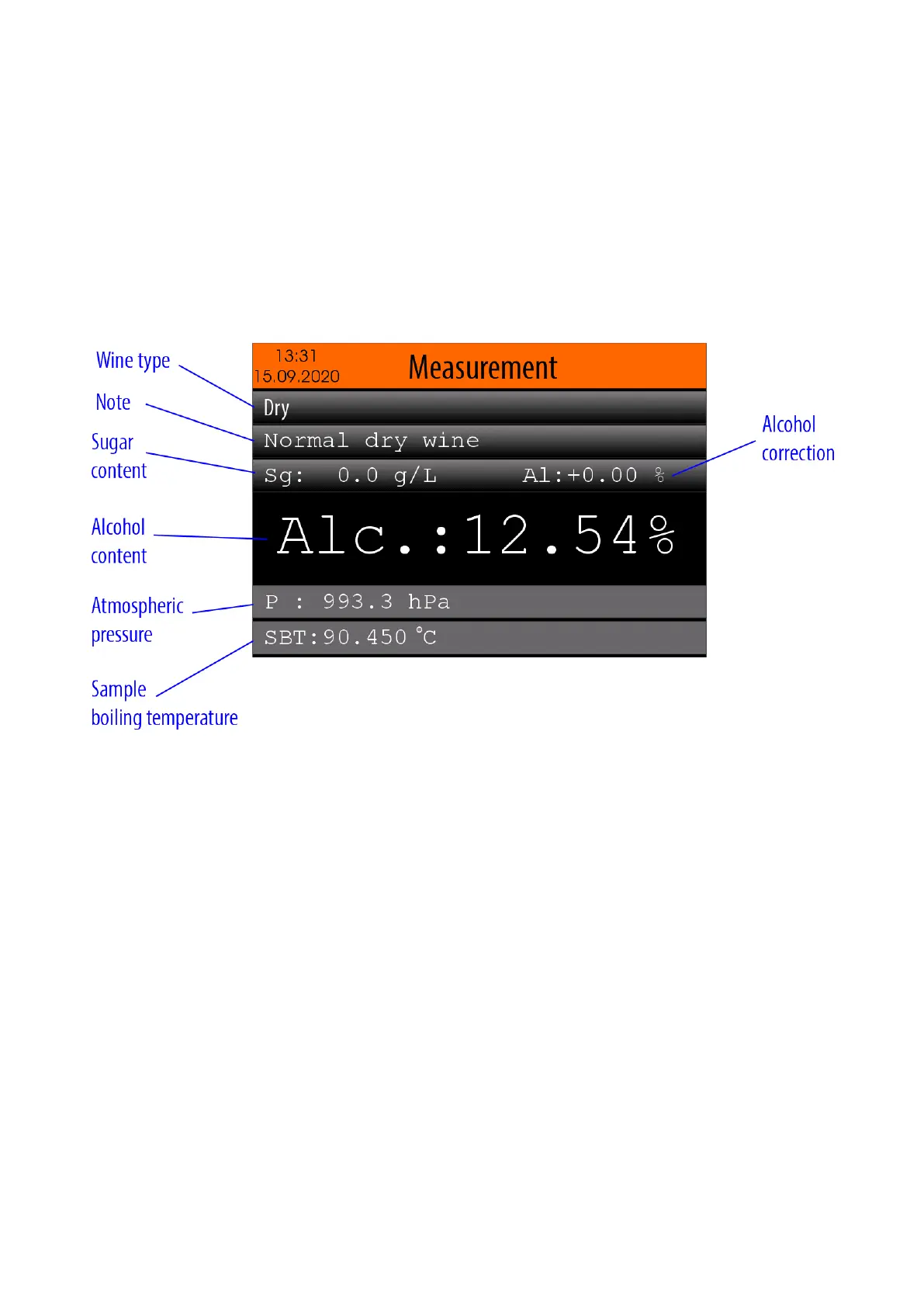 5.3.1. Automatic reading of the boiling point and the percentage of alcohol