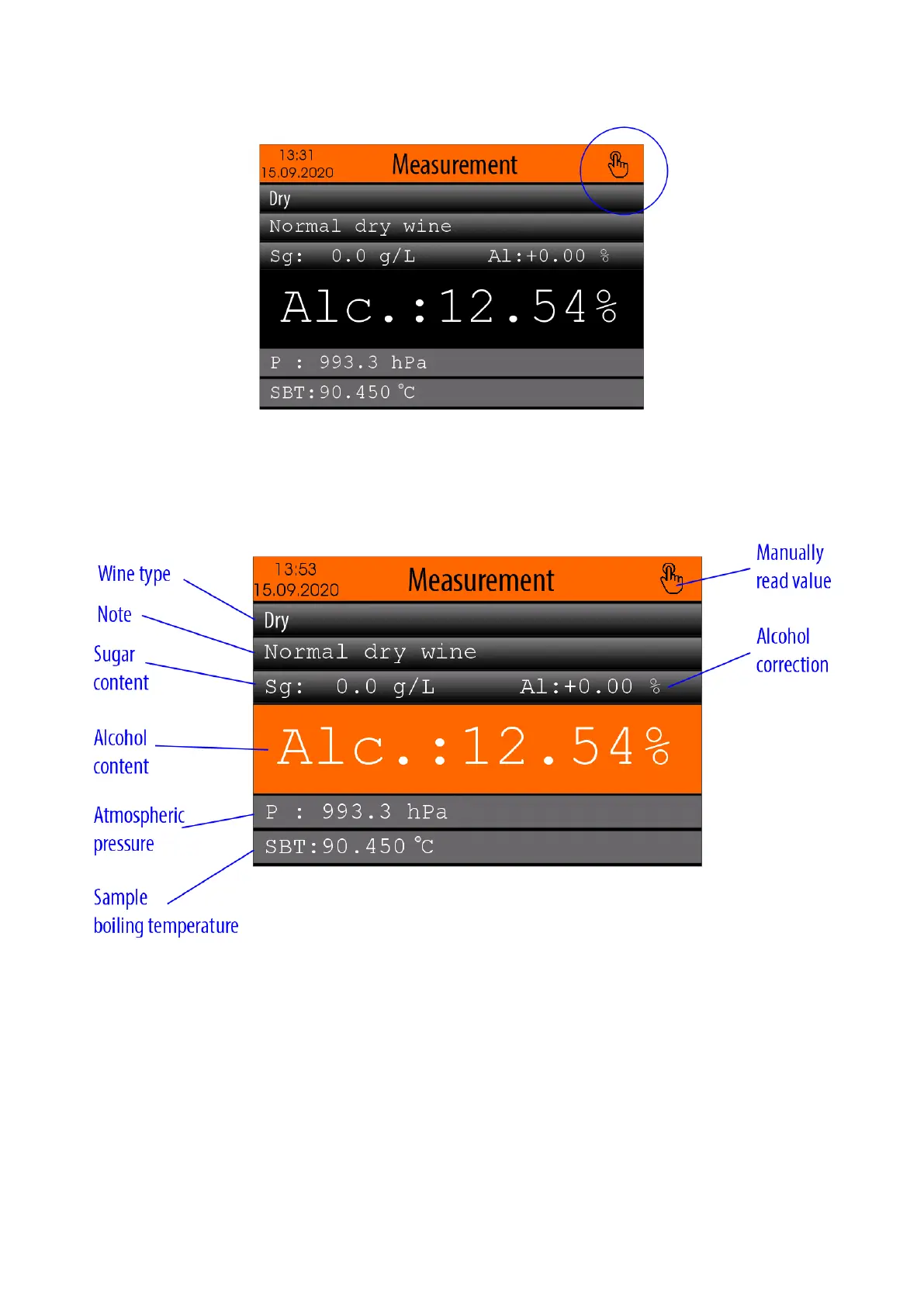 Manually read value - An icon indicating that the calculated result for alcohol content is made on the basis of