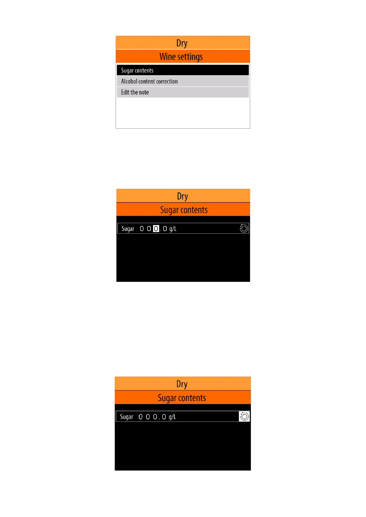 If you want to enter the default value for sugar content (0.0 g / L), use the <Left arrow> / <Right arrow>