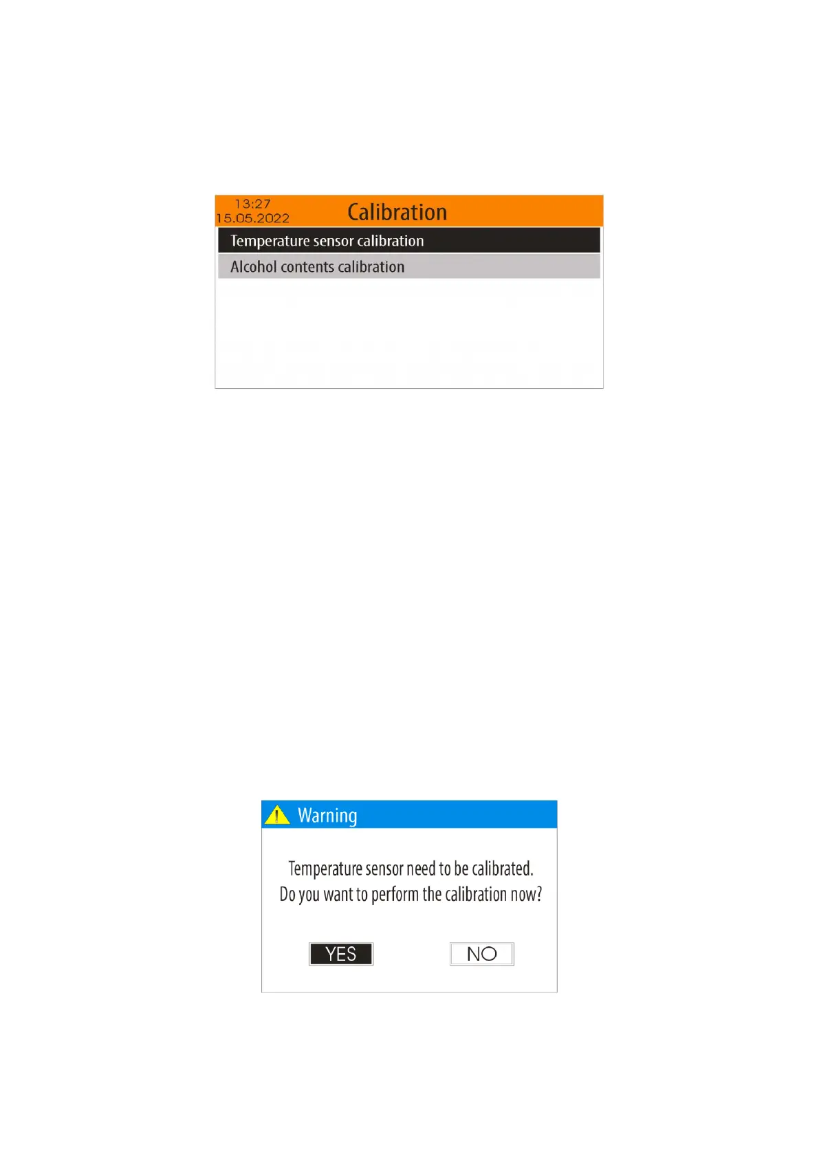 To select the "Calibration" menu, from the "Settings" menu (see item 5.4.), Select the "Calibration"