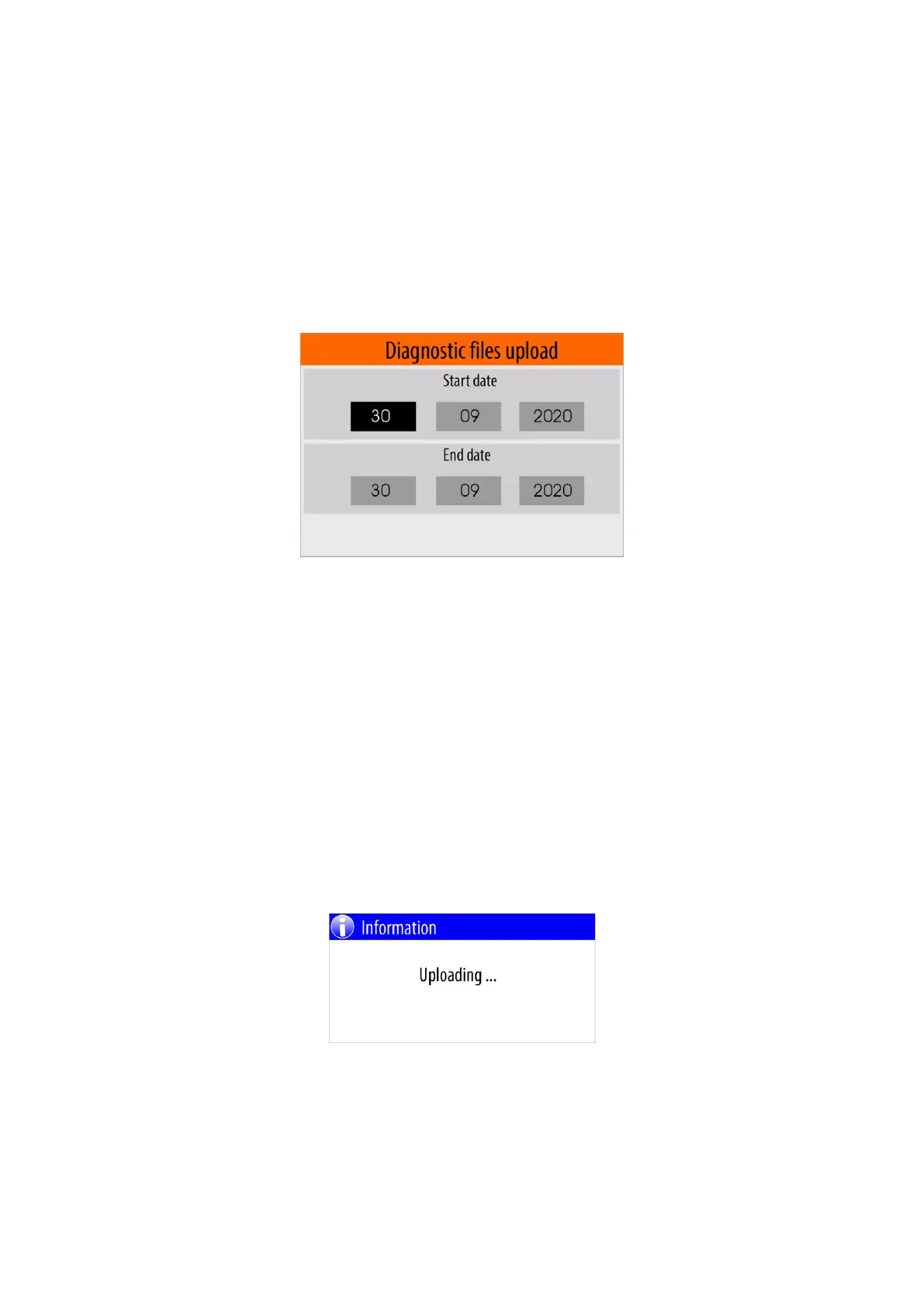 To enter in the "Diagnostic files upload" mode from the "File management" menu (see item 5.4.7.), select the