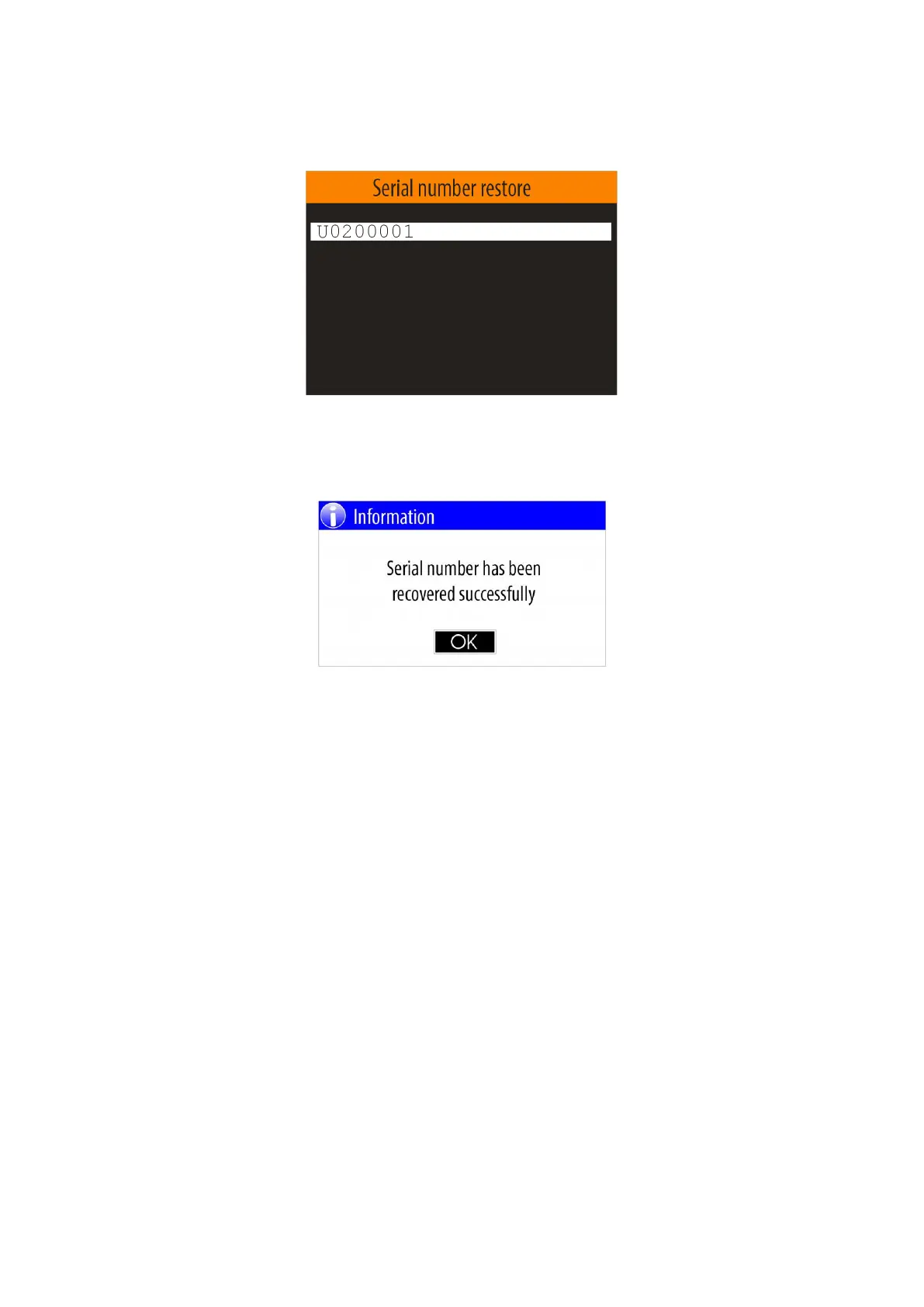 Upon successful completion of the serial number recovery procedure, a message will appear: