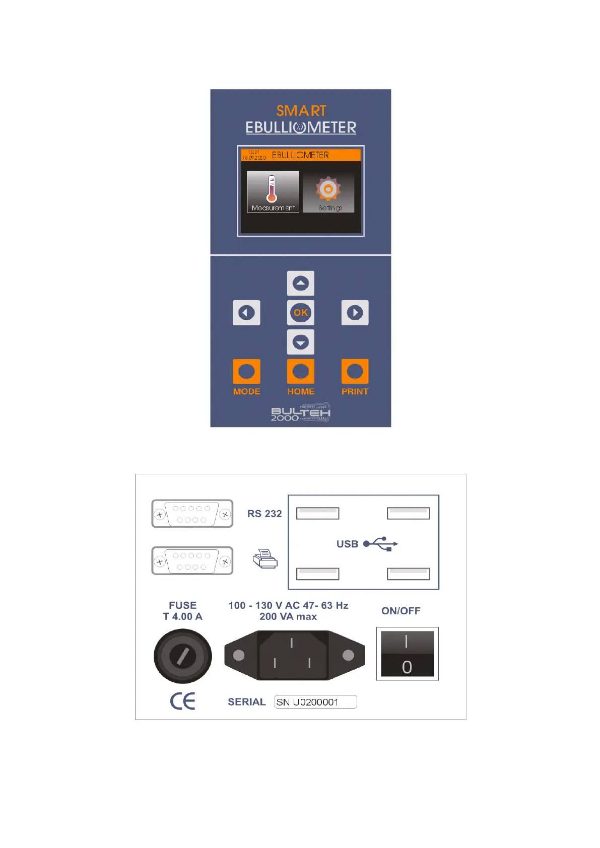 Bulteh 2000 SMART EBULLIOMETER - Display and Keyboard; Rear Panel
