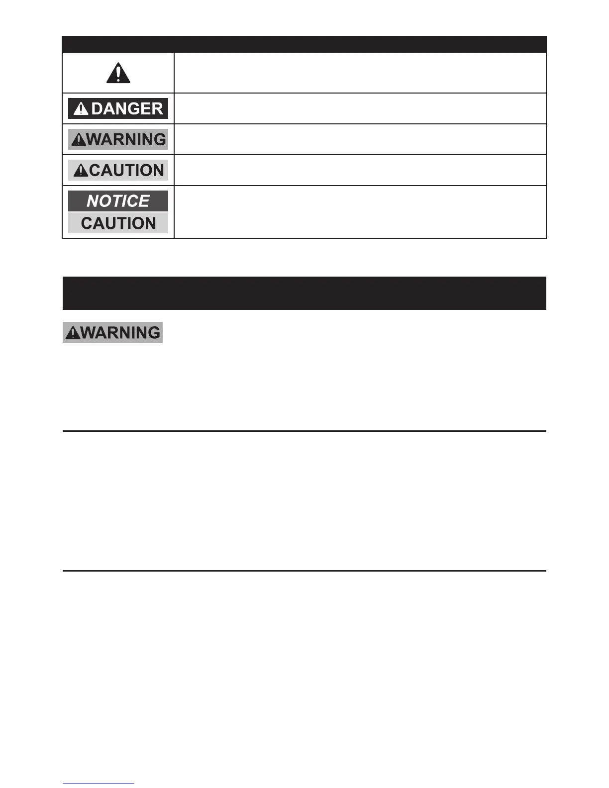 WARNING SYMBOLS AND DEFINITIONS
