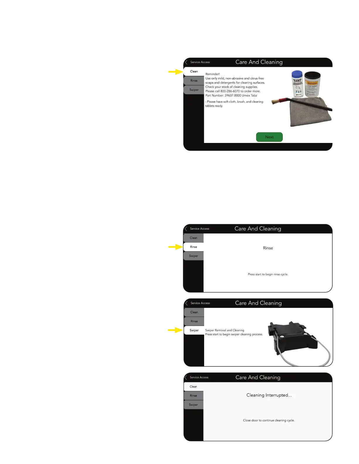 Three cleaning tabs: Clean, Rinse, and Swiper.