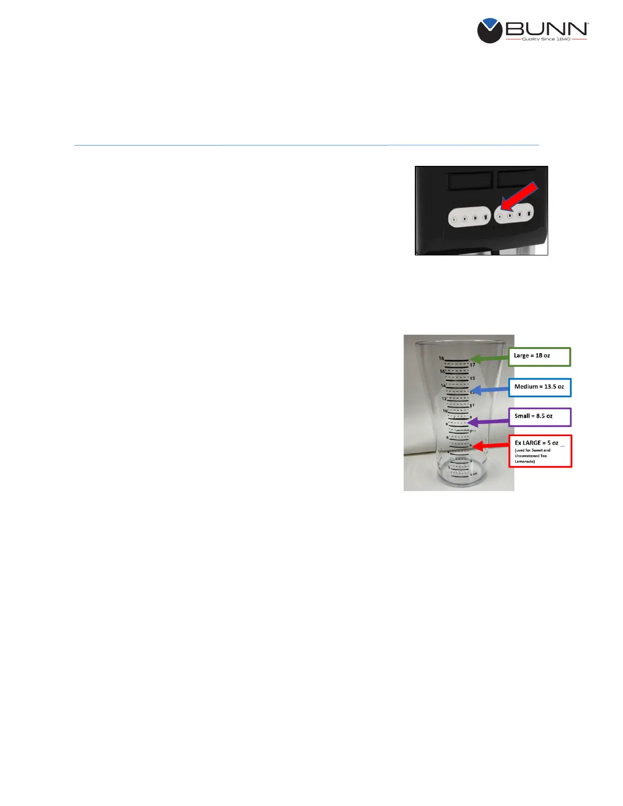 portion size button is accurately set to 18 ounces.