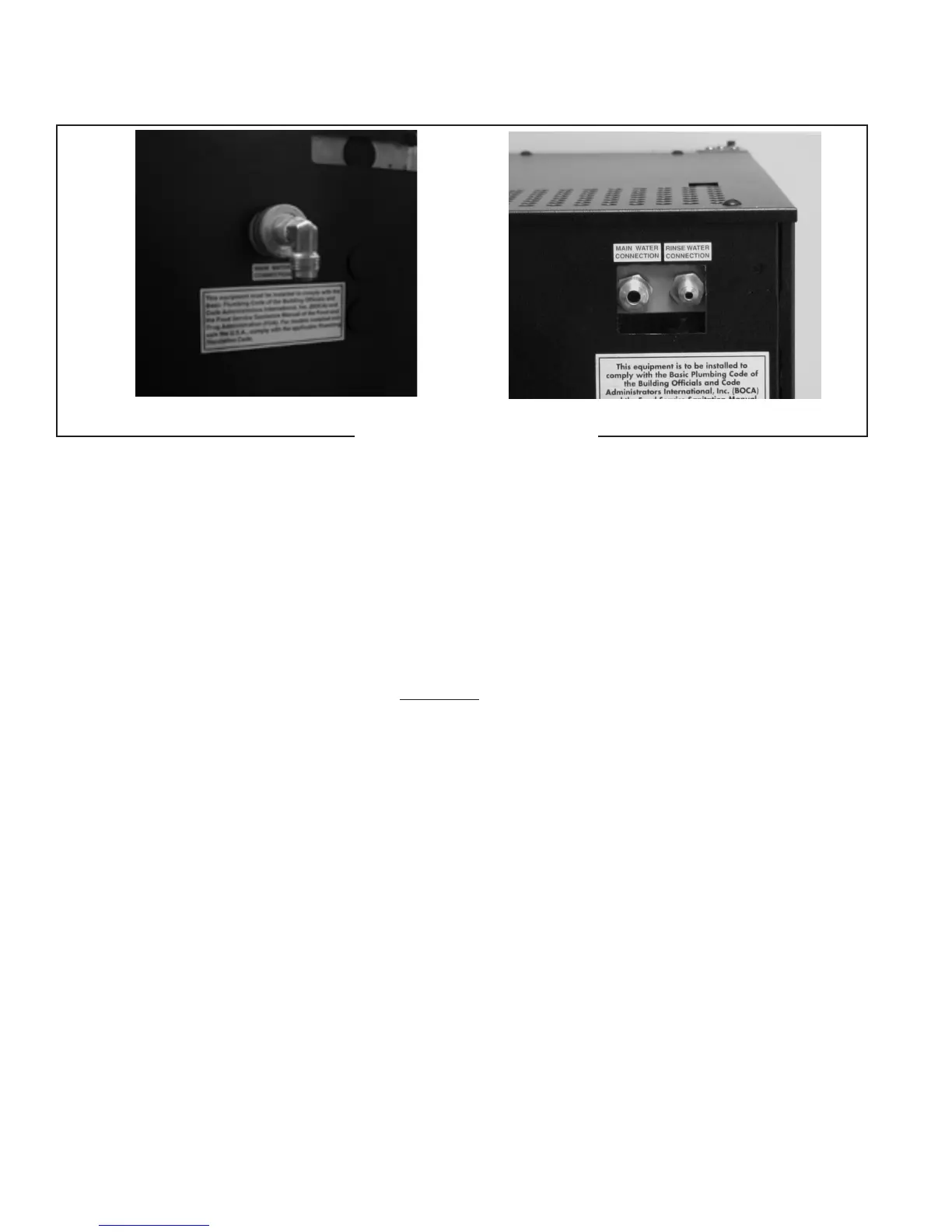 All plumbing connections are located on the rear of the dispenser. For Models prior to the Water Inlet Valve,
