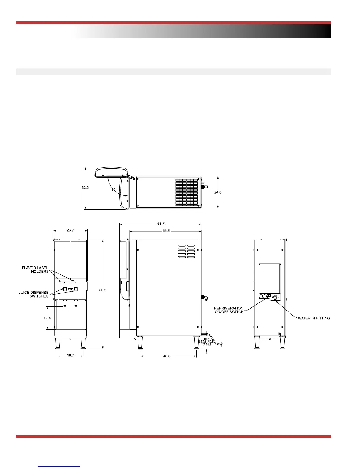 75˚F (24˚C) incoming water for 180 drinks without exceeding 40˚F (4.4˚C) finished drink temperature.
