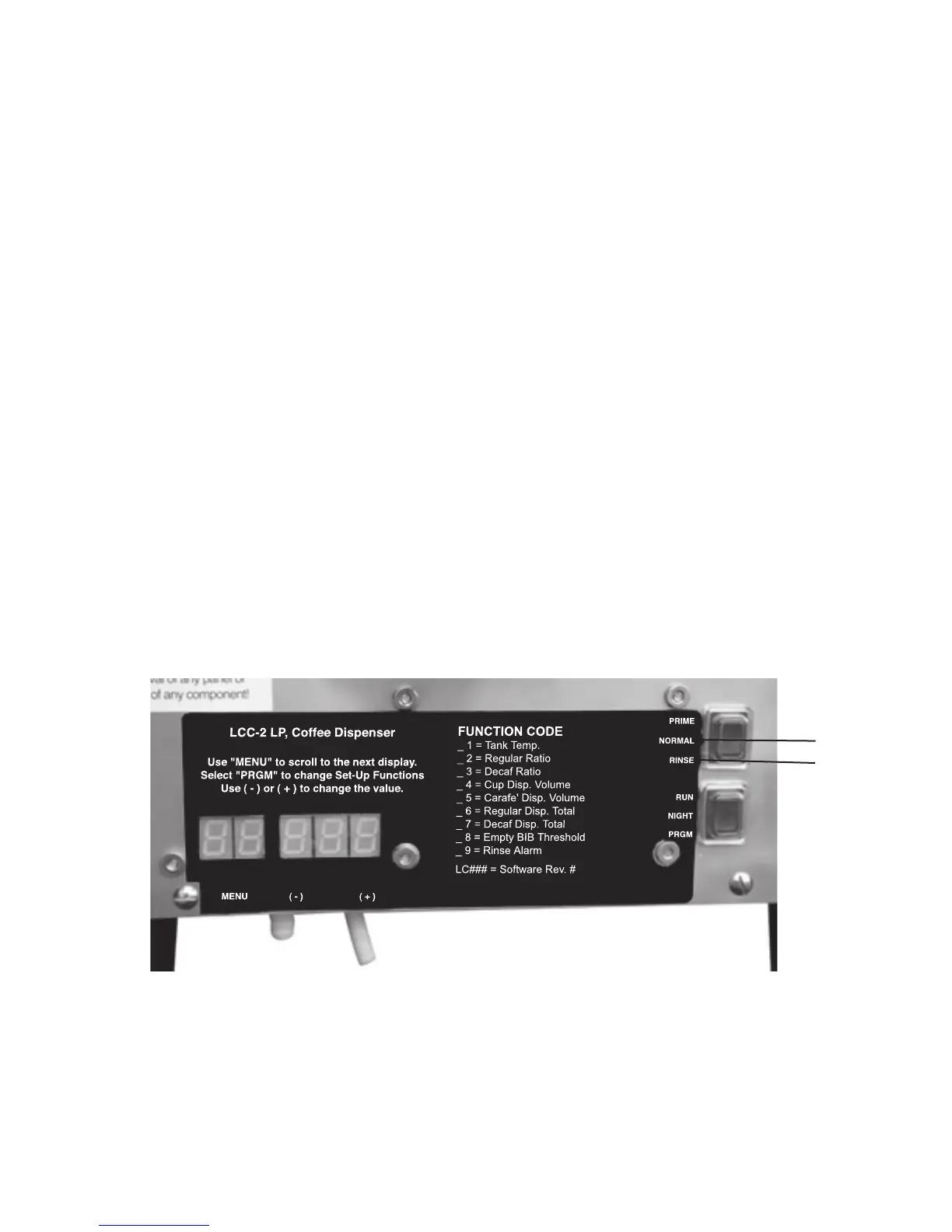 The dispenser is shipped with the automated Rinse Alarm disabled, (No Alarm). It is up to the user to determine the