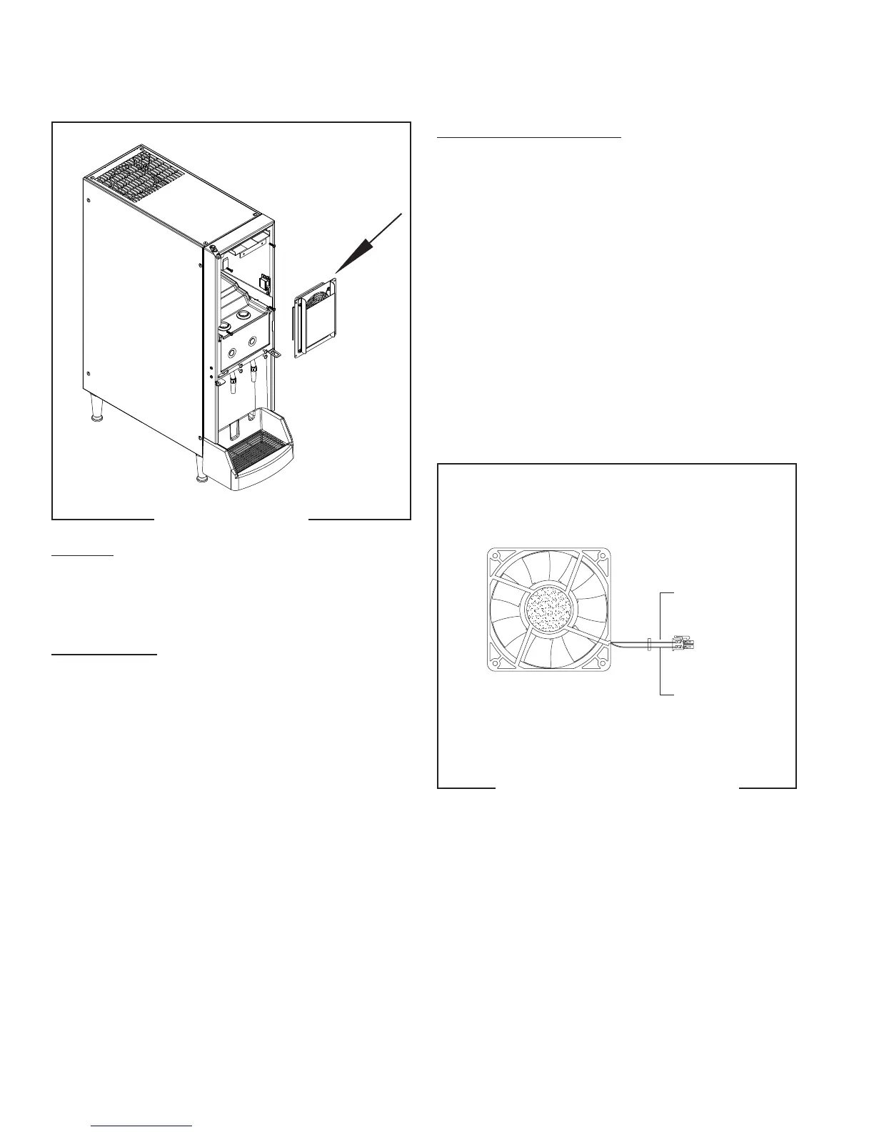 The cabinet fan is located inside the dispenser cabinet