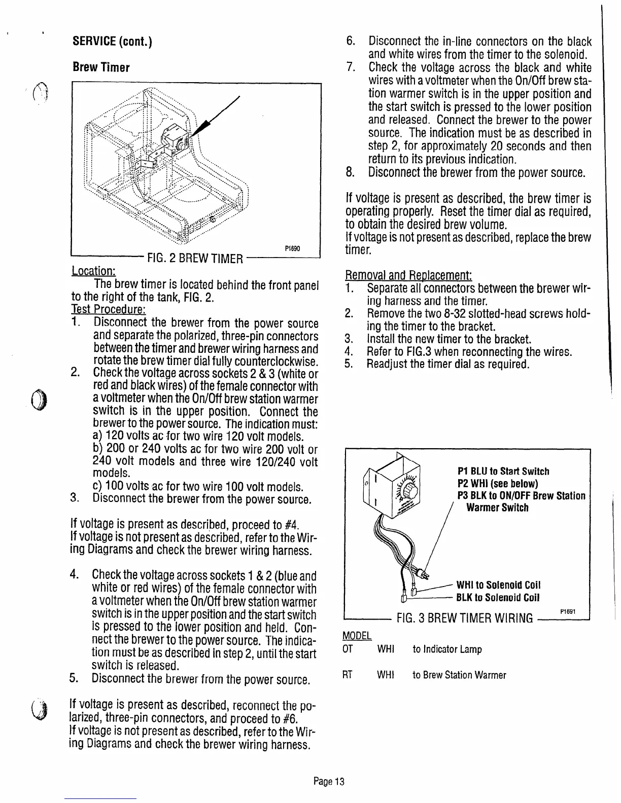 wires with a voltmeter when the On/Off brew sta-