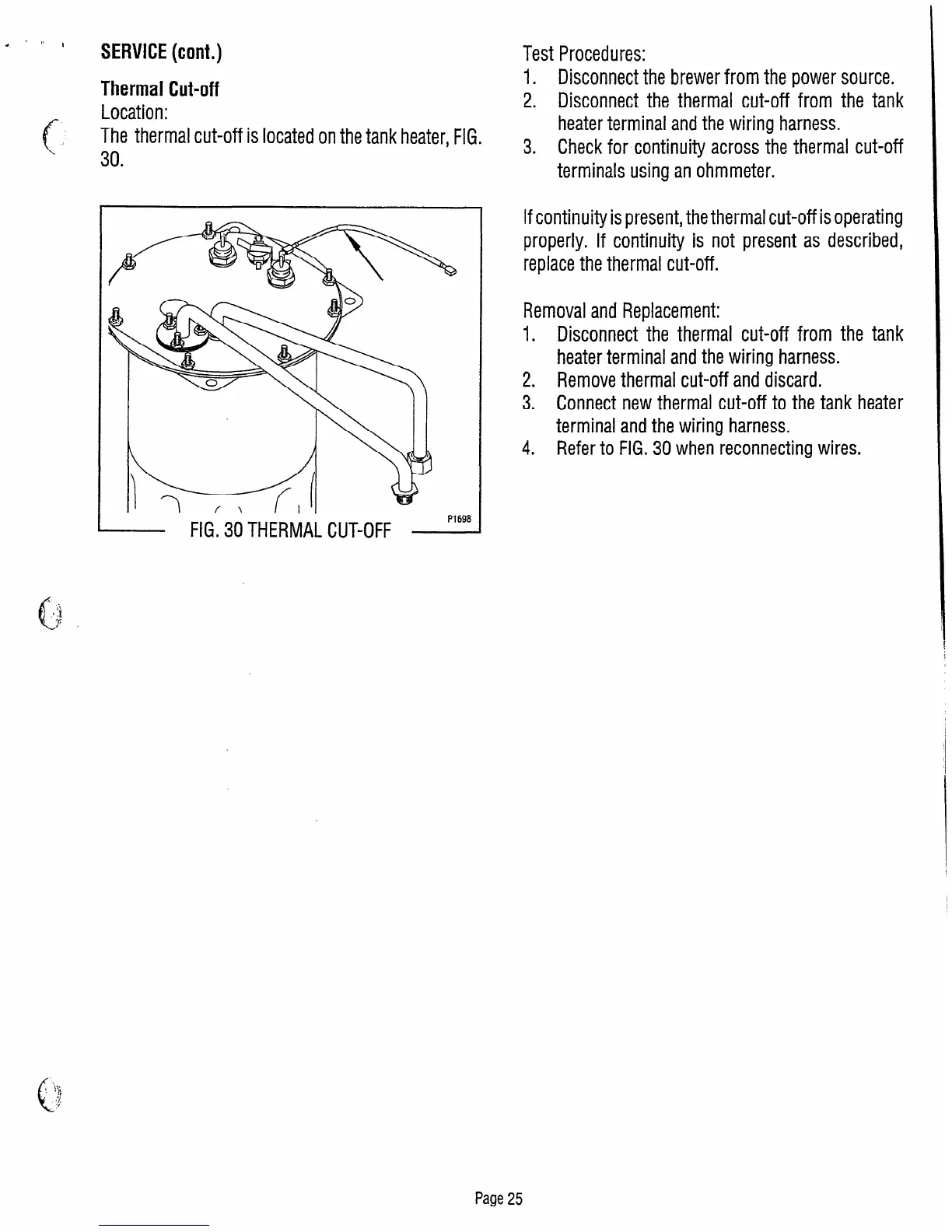 The thermal cut-off is located on the tank heater, FIG.