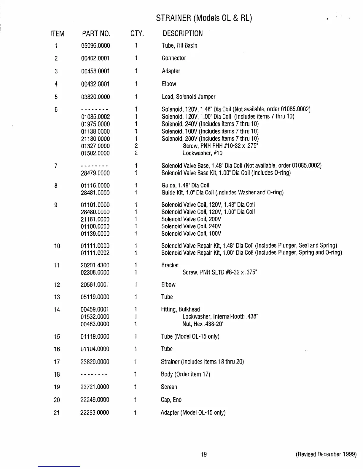 1 Solenoid, 12OV, 1.00" Dia Coil (Includes items 7thru 10)