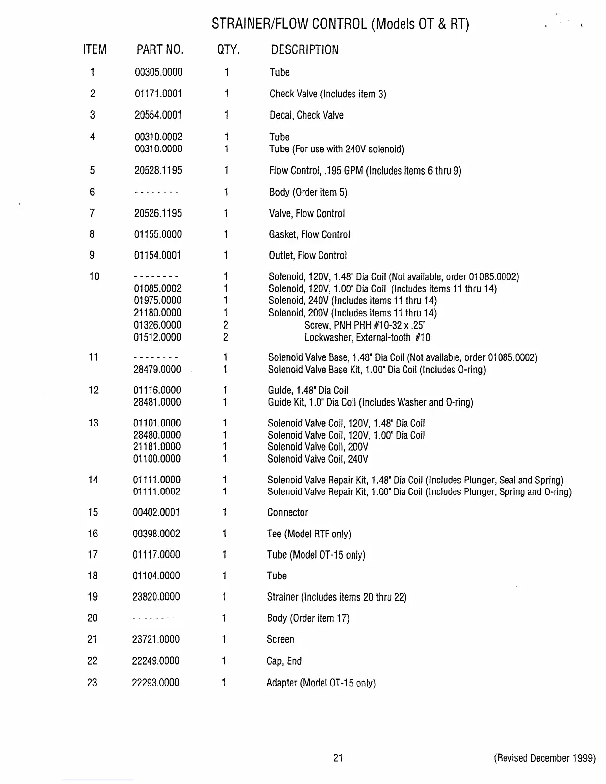 STRAINER/FLOWCONTROL(Models OT& RT)