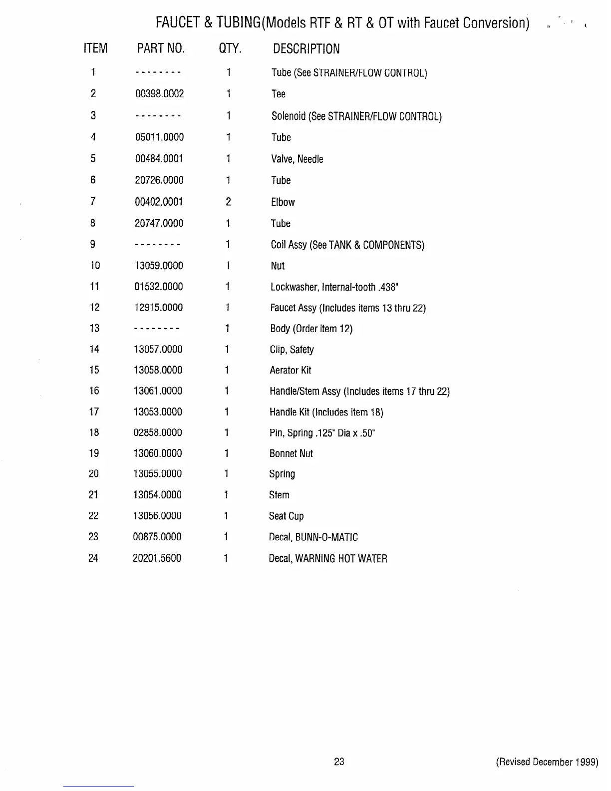 Faucet Assy (Includes items 13 thru 22)