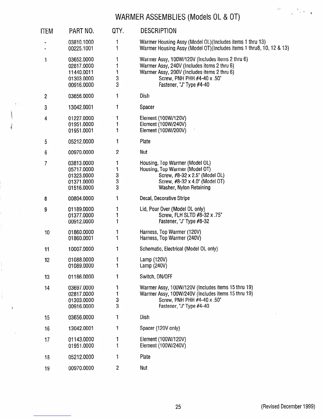 Warmer Housing Assy (ModelOL)(lncludes items 1 thru 13)